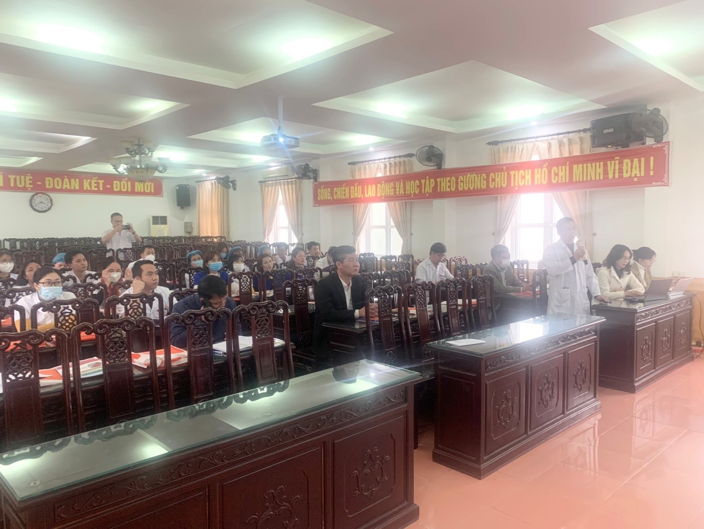 Buổi sinh hoạt khoa học có sự tham dự của Ban giám đốc bệnh viện, đại diện công ty GSK cùng các bác sĩ, dược sĩ và điều dưỡng của bệnh viện.