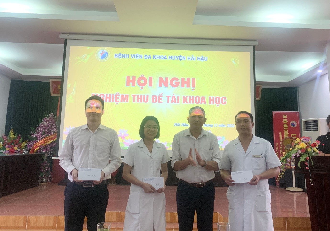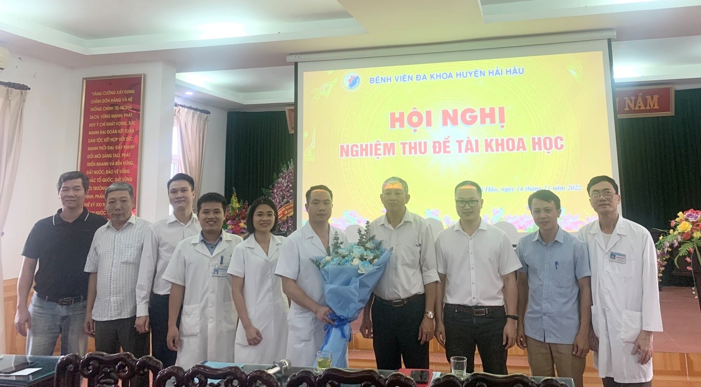 Thực hiện quyết định số 1121/KH-SYT ngày 10/11/2022 của Bệnh viện đa khoa Hải Hậu về việc “Thành lập Hội đồng tổ chức nghiệm thu đề tài khoa học cấp cơ sở năm 2022”, ngày 14/11/2022, Hội đồng khoa học Bệnh viện đa khoa Hải Hậu tiến hành tổ chức nghiệm thu đề tài khoa học cấp cơ sở năm 2022.